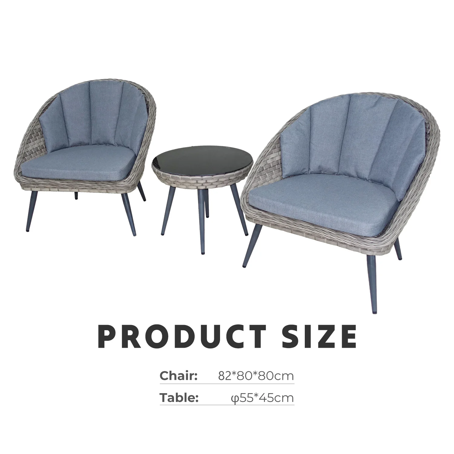Präsentation: Das E-shine Hot Sale 3-Stück-Außenbereich-Möbelset, die perfekte Ergänzung für jede Terrasse oder Gartenfläche für eine gemütliche und bequeme Außenumgebung. Dieses moderne Set enthält zwei PE-Rattan-Stühle und einen passenden Teetisch, was eine gemütliche Sitzgruppe für Sie und Ihre Gäste bietet.