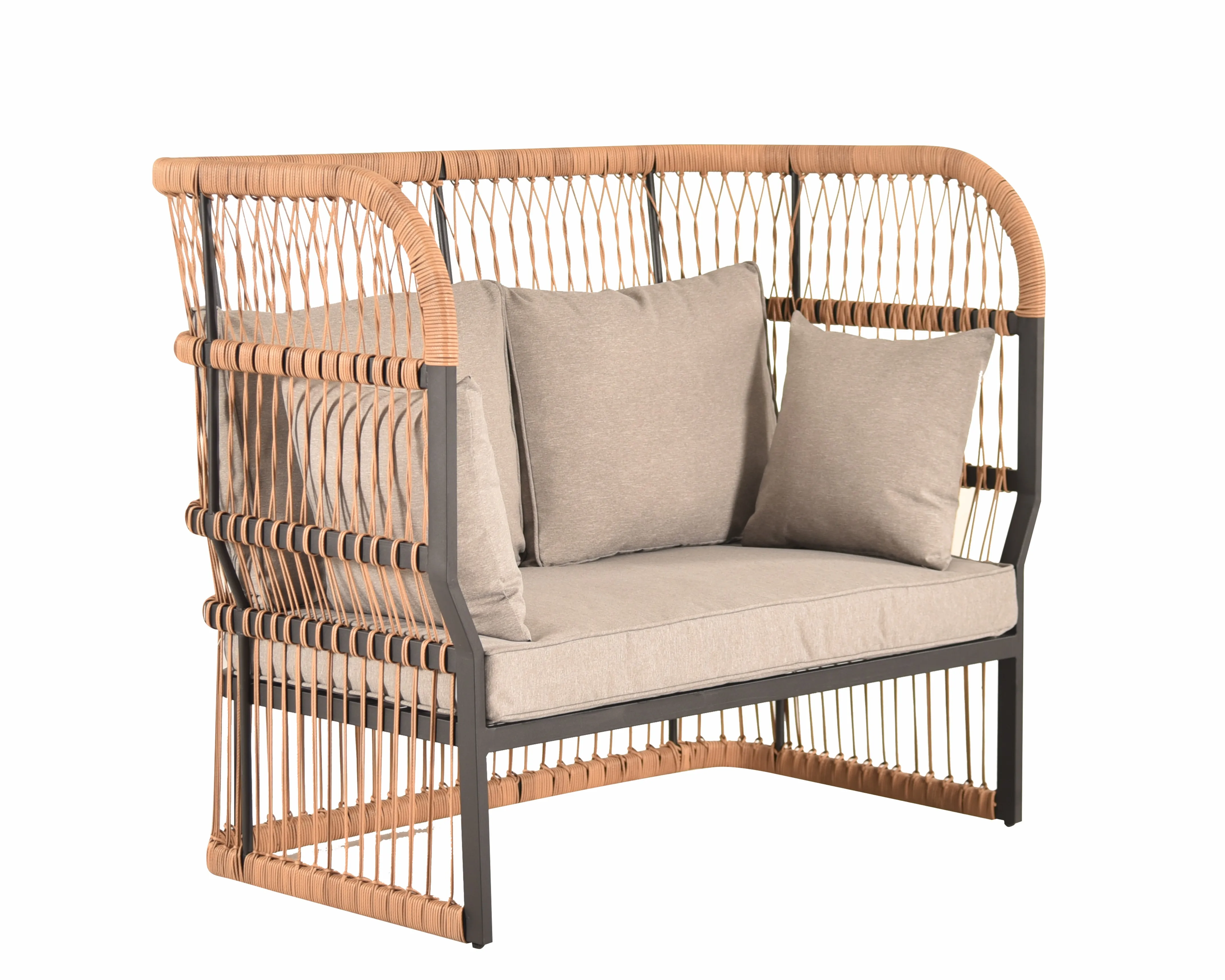 1. Rahmen: Alu oder Stahl als Option 2. Rattan: UV-beständiges PE-Rattan