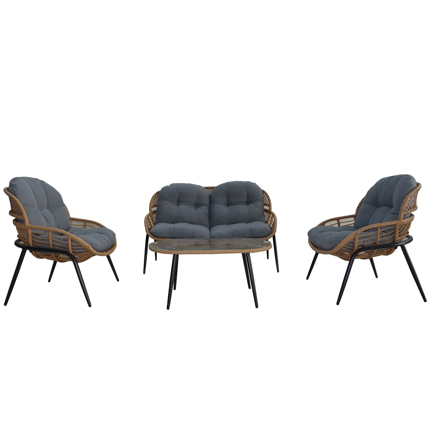 Mit hochwertigen Materialien hergestellt, ist dieses Außenmöbelset darauf ausgelegt, den Elementen standzuhalten und dauerhaften Komfort zu bieten. Die schlanke Designlinie und der moderne Finish werden jede Außenraumdekoration ergänzen, wodurch es eine vielseitige Ergänzung für Ihre Terrasse, Veranda oder Garten wird.